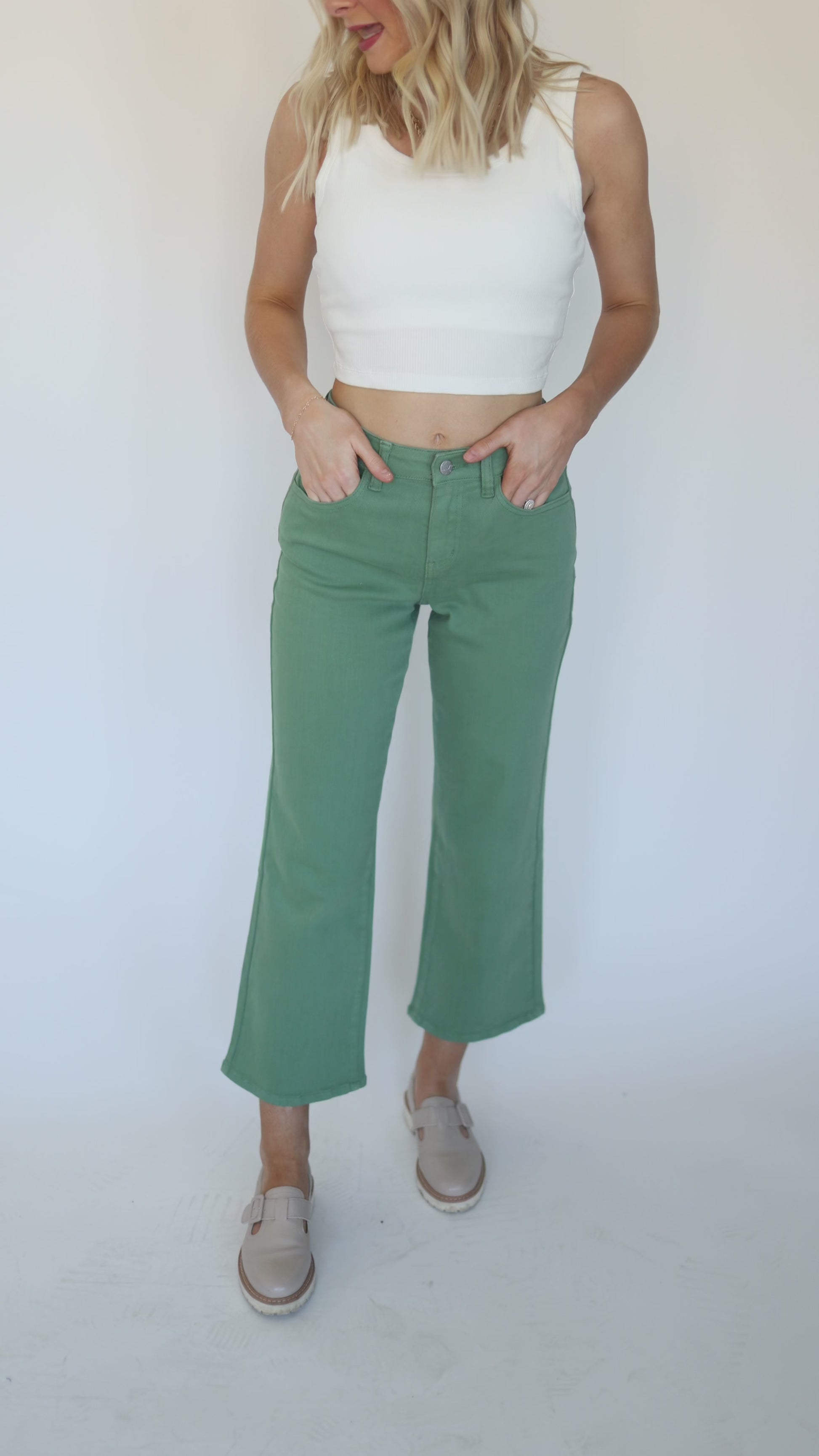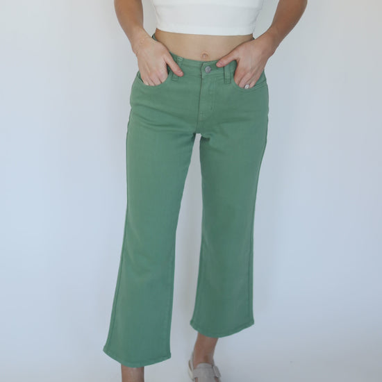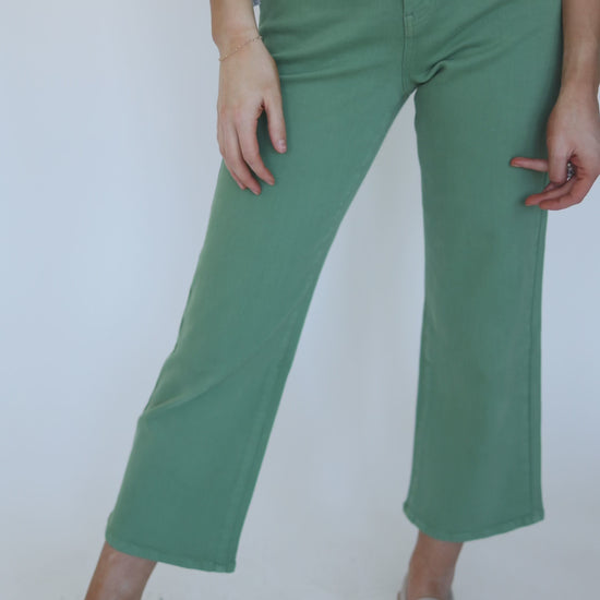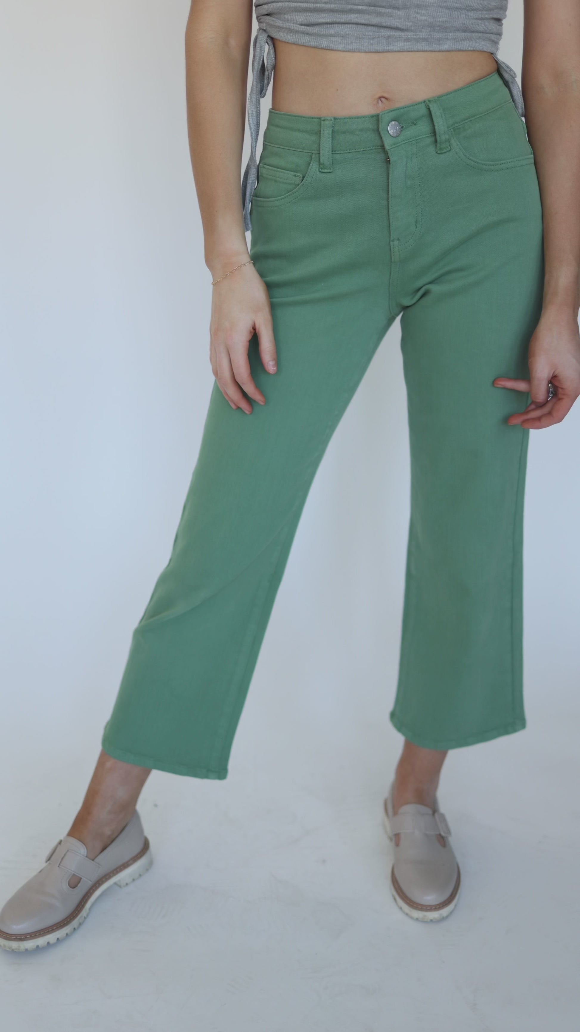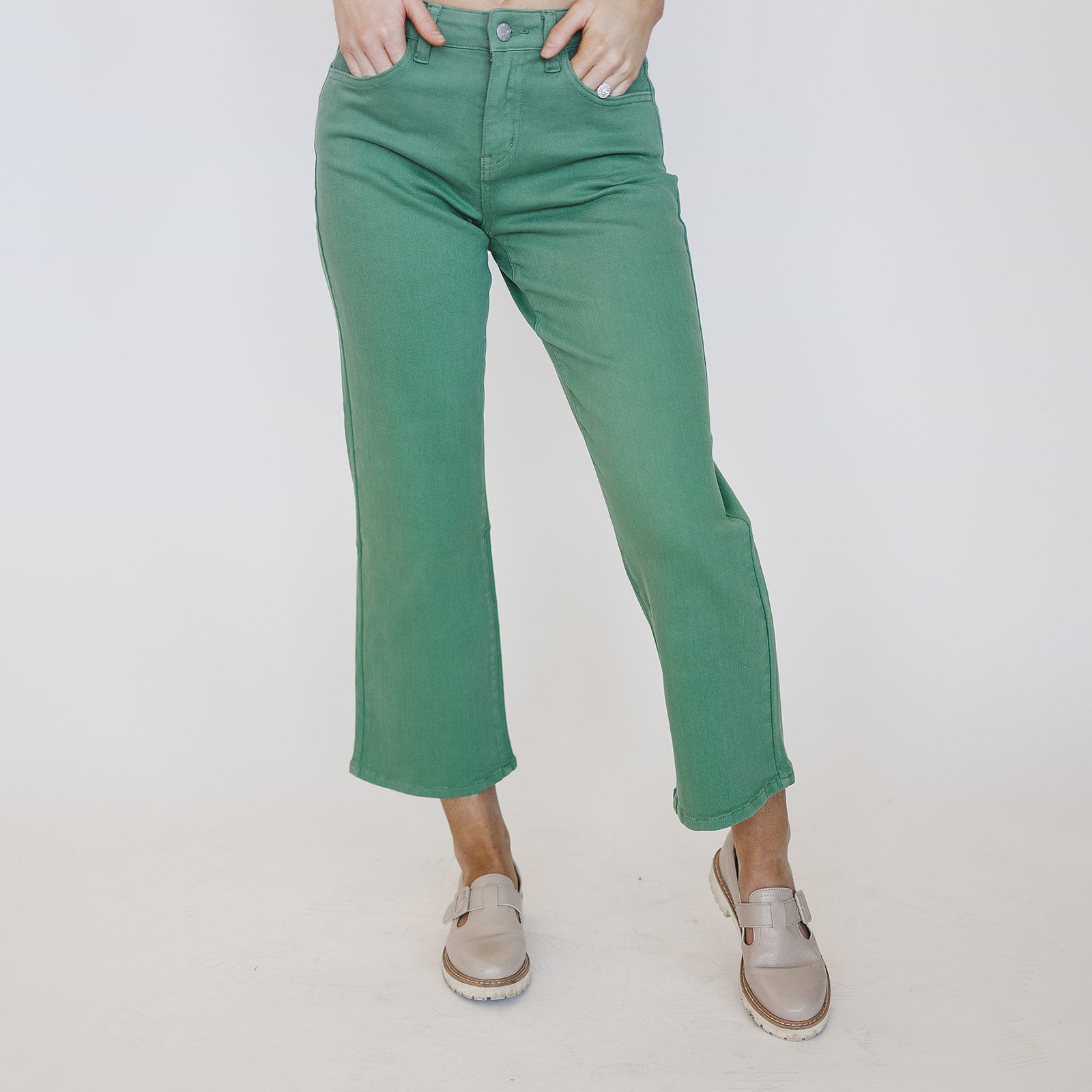 Dive into the lush green revolution with our Non-Distressed Leafy Green Cropped Wide Leg Jeans – because your wardrobe deserves a pop of fabulous foliage! Picture this: you, rocking a vibrant shade that's basically an ode to fresh beginnings. These wide-leg wonders aren't just jeans; they're your passport to stylish comfort. The non-distressed charm adds a touch of sophistication, ensuring you're ready for any adventure – be it a casual brunch or a spontaneous night out or a day at the office. Mix and match with your favorite kicks or elevate the look with some killer heels – these leafy green jeans play well with every style symphony. Say goodbye to the ordinary and hello to the extraordinary; your wardrobe is about to get a dose of cheeky chic!