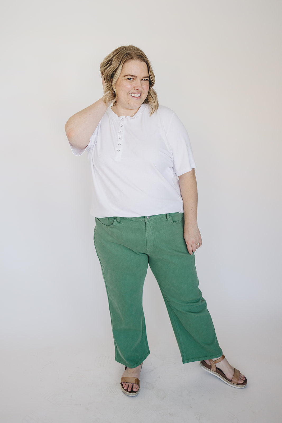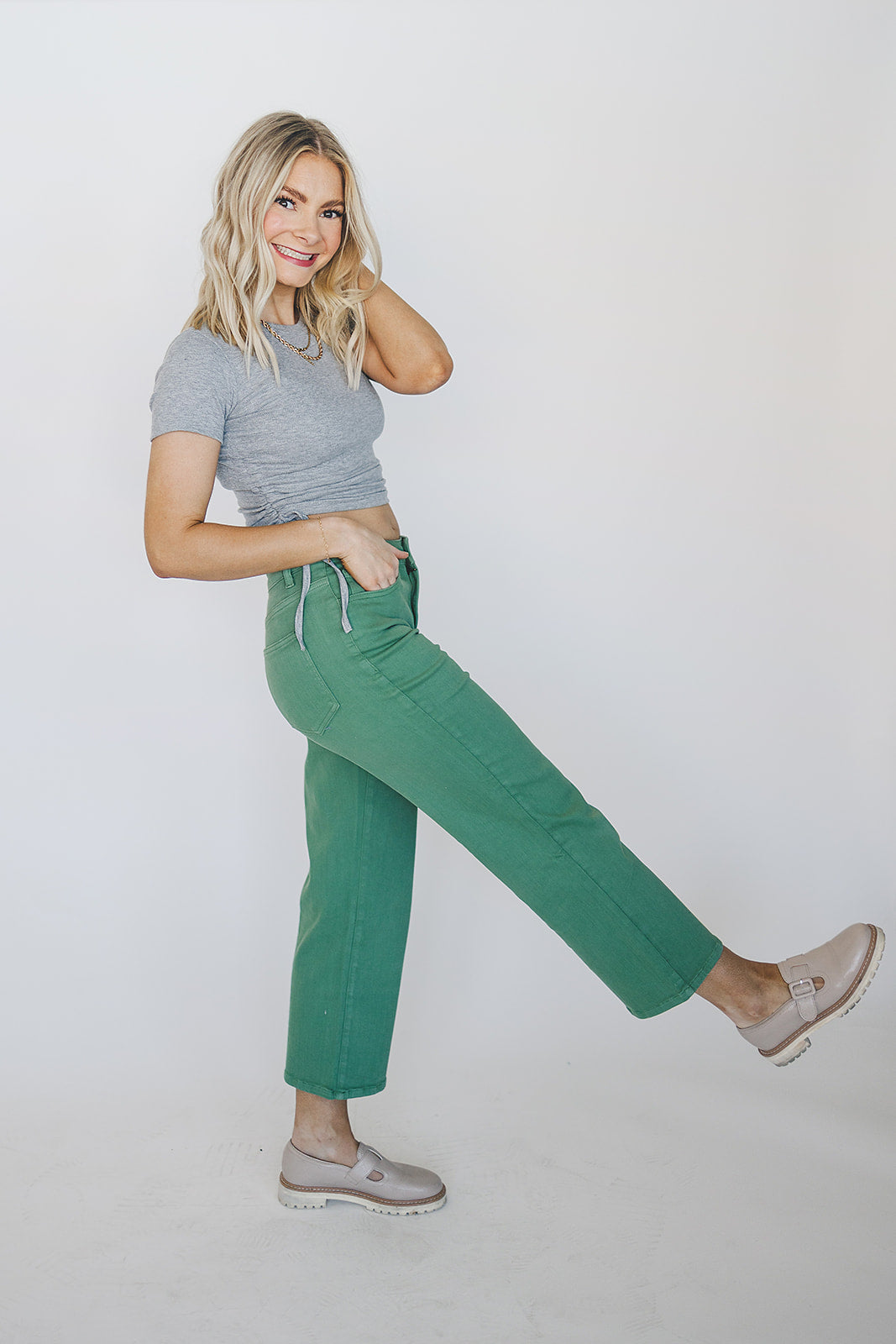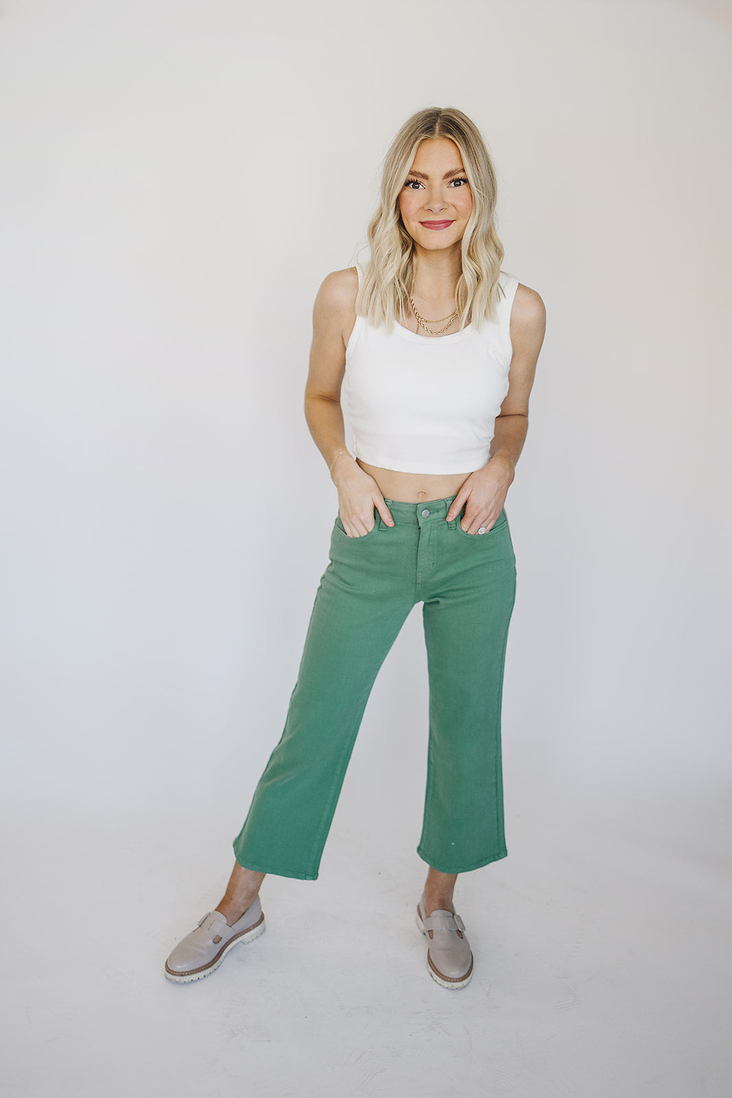 Dive into the lush green revolution with our Non-Distressed Leafy Green Cropped Wide Leg Jeans – because your wardrobe deserves a pop of fabulous foliage! Picture this: you, rocking a vibrant shade that's basically an ode to fresh beginnings. These wide-leg wonders aren't just jeans; they're your passport to stylish comfort. The non-distressed charm adds a touch of sophistication, ensuring you're ready for any adventure – be it a casual brunch or a spontaneous night out or a day at the office. Mix and match with your favorite kicks or elevate the look with some killer heels – these leafy green jeans play well with every style symphony. Say goodbye to the ordinary and hello to the extraordinary; your wardrobe is about to get a dose of cheeky chic!